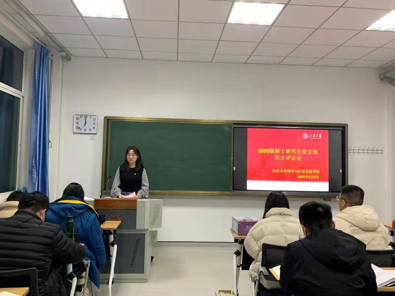 2020级硕士研究生党支部于洪家楼校区九号楼410教室召开民主评议会,开展民主评议党员工作,会议由支部组织委员丁一珂主持,支部全体党员参加。