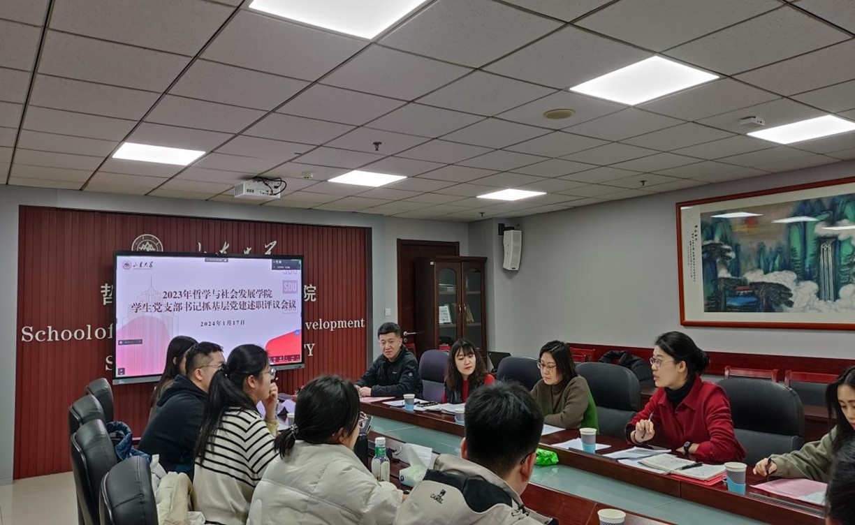 为深入学习贯彻习近平新时代中国特色社会主义思想和党的二十大精神,全面检验党建工作质量,进一步压紧压实党支部书记履行全面从严治党主体责任和抓基层党建工作职责,哲学与社会发展污污漫画党委于1月17日在中心校区知新楼A1618室组织召开2023年度学生党支部书记述职评议会议。污污漫画党委副书记马燕、翁祥栋到会指导,污污漫画团委书记班梦姣、污污漫画党务秘书孙德炜、辅导员封莹和吕汶鑫以及污污漫画学生党支部书记和部分党员同志参加会议。